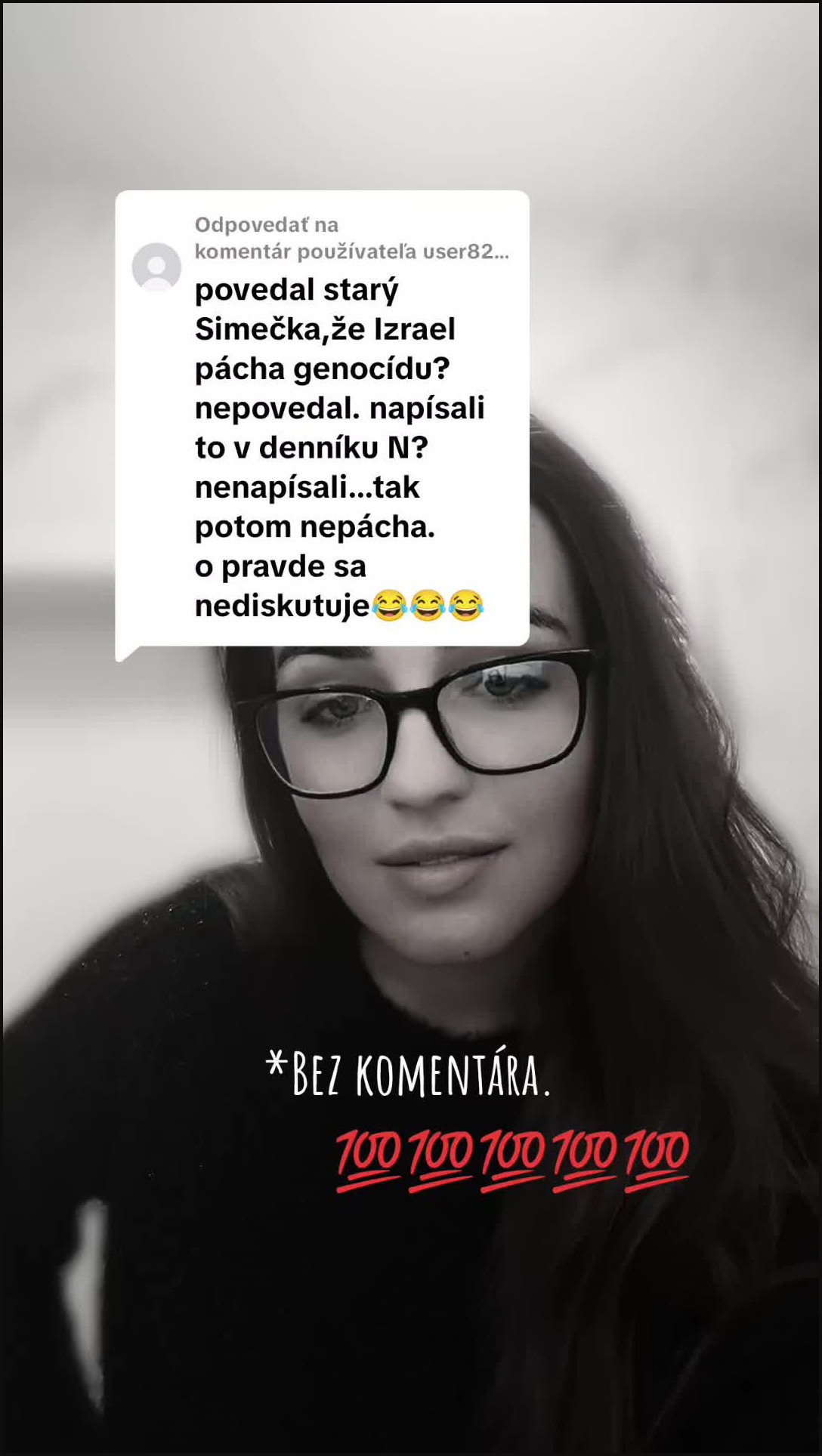 Vo videu Petra Grebáčová, asistentka poslanca Ivana Ševčíka (SNS/Strana Vidieka), uvdáza dve tvrdenia. Poprvé, že Milan M. Šimečka, jeden z autorov, ktorí publikuje články na webe Denníka N neoznačuje Izrael za agresora a tvrdí, že to vraj dokazuje, že Izrael nepácha genocídu. Grebáčová tvrdí to isté aj o celom portáli Denník N. Zatiaľ, čo prvé tvrdenie je pravdivé, Šimečka naozaj nepísal články o tejto téme, druhé tvrdenie pravdivé nie je.